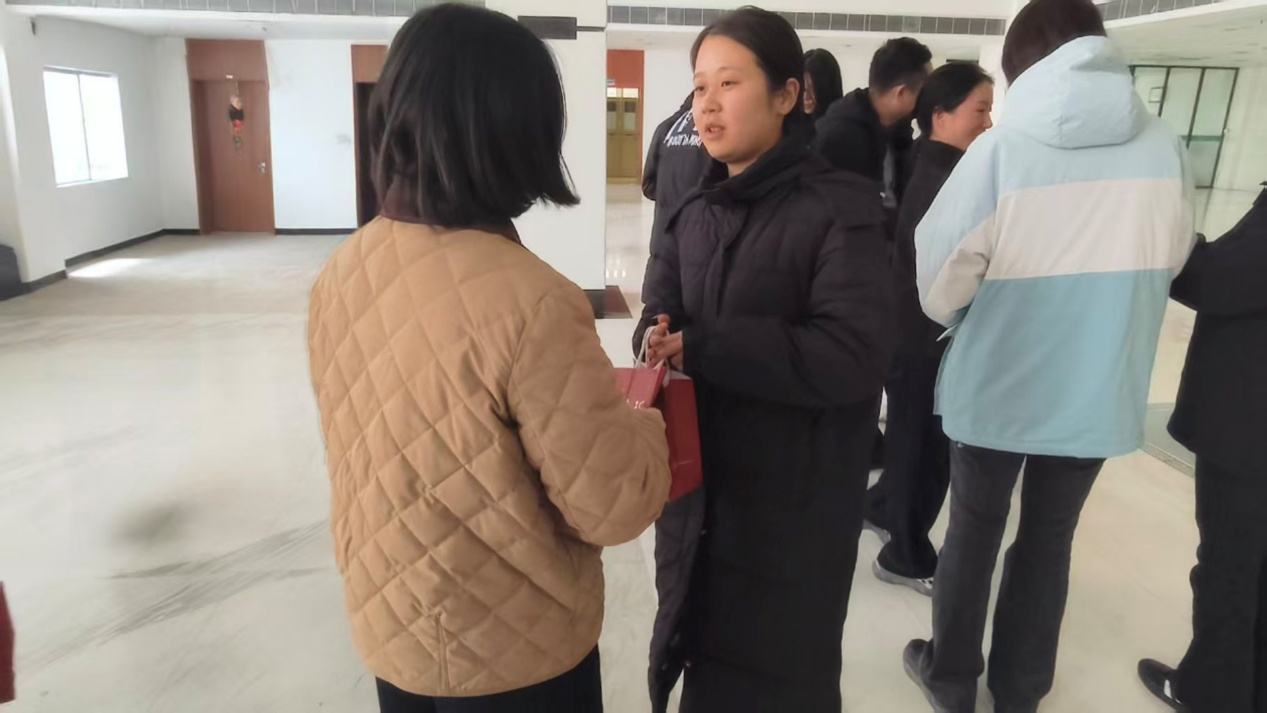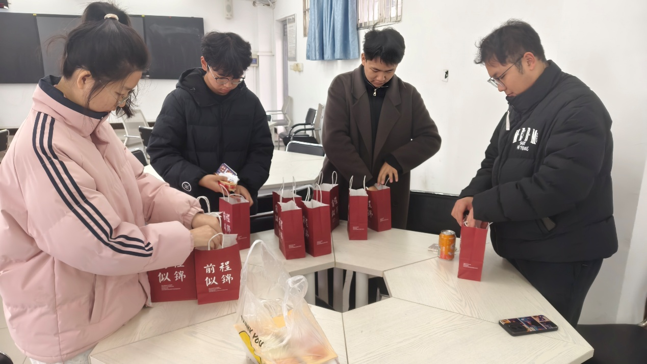 在暖心交流环节,考研学子们踊跃分享备考心得与困惑,支部成员与老师耐心倾听、细致解答。一句句暖心话语,如“愿你笔锋所至皆坦途”“全力以赴,顶峰相见”,汇聚成考研路上的强大动力。随后,党支部成员为每位考研学子送上精心准备的备考实用物资与励志小礼品,笔记本、中性笔、解压神器等物资既贴合备考需求,更传递着党支部的深切关怀。