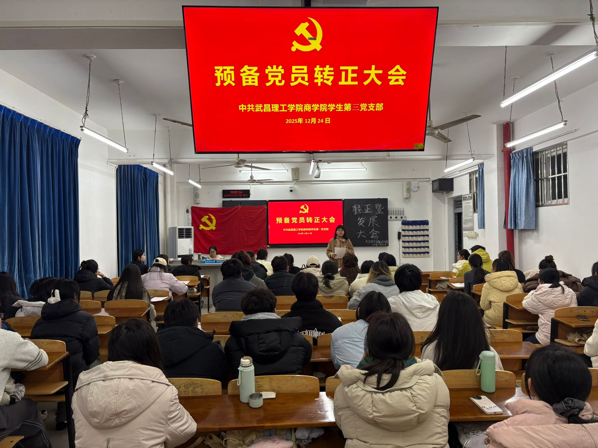 2025年12月24日18时,永利集团304学生第三党支部在永利集团304304教室隆重召开了党员转正暨发展大会。本次大会旨在讨论预备党员聂林慧、熊心怡、张雅萱3位同志的转正议题以及张新广等5位同志被吸纳入党的议题。会议严格按照党的组织程序进行,确保了大会的严肃性和规范性。永利集团304学生第三党支部的全体成员及梅芳书记参与了此次会议。