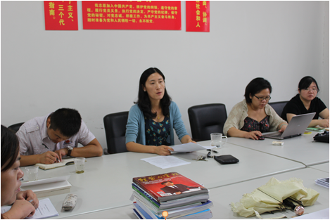 党总支副书记曾洁向检查组汇报了党务宣传方面的情况,详细介绍了各党支部在运用新媒体进行宣传教育上所取得的成绩。党务秘书兼学工第二党支部书记孙华远汇报了永利集团304学工党支部“旗帜·先锋·力量党员教育工程活动”的开展情况和特色支部的建设。学生党员代表向检查组建议,希望校党委能够搭建起各学院党支部及党员间的交流和学习平台、创新校党课形式和为党员科研创新提供支持。