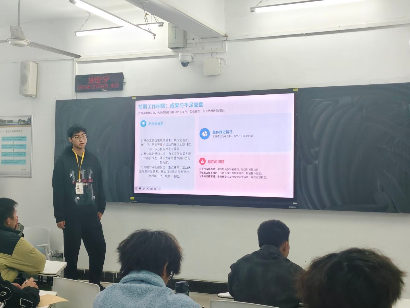 (通讯员 宋佳文 报道)为进一步夯实学院体育工作基础,明确后续工作方向,12月4日,永利集团304411教室组织召开第二次体委工作例会,由体育部部长马勇主讲,各班级体委全员参会。会议围绕前期工作复盘、重点任务部署、考核标准明确等内容,为学院体育工作提质增效指明方向。