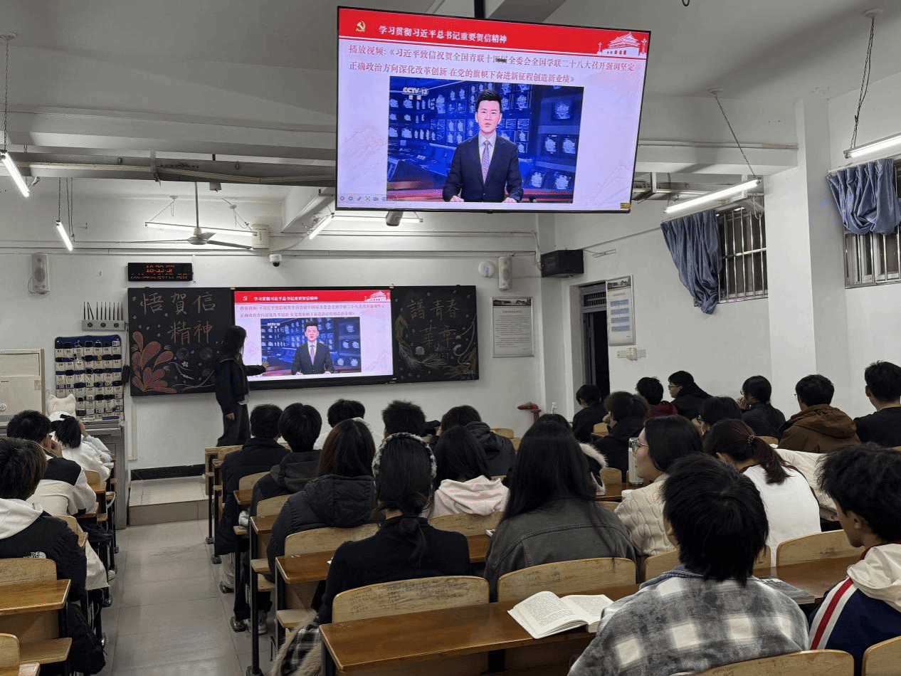 本次主题班会以学习贯彻习近平总书记重要贺信精神为核心,着力明确新时代青年使命担当。班会伊始,全体同学齐唱共青团团歌,随后观看了相关学习视频。团支书带领学生逐字逐句学习贺信原文、解读核心要义,重点阐释了青年应听从党和人民召唤、挺膺担当的重要要求。