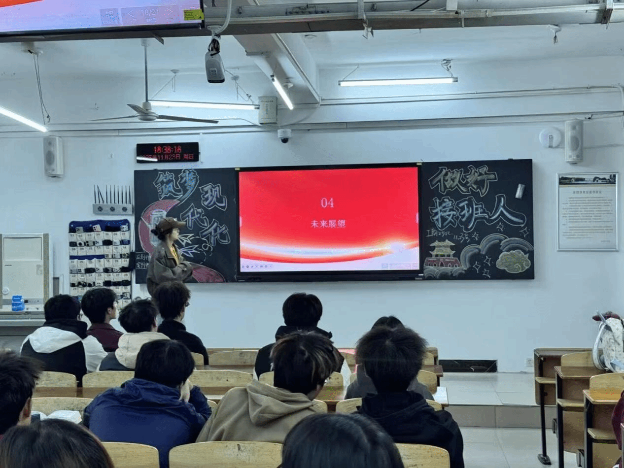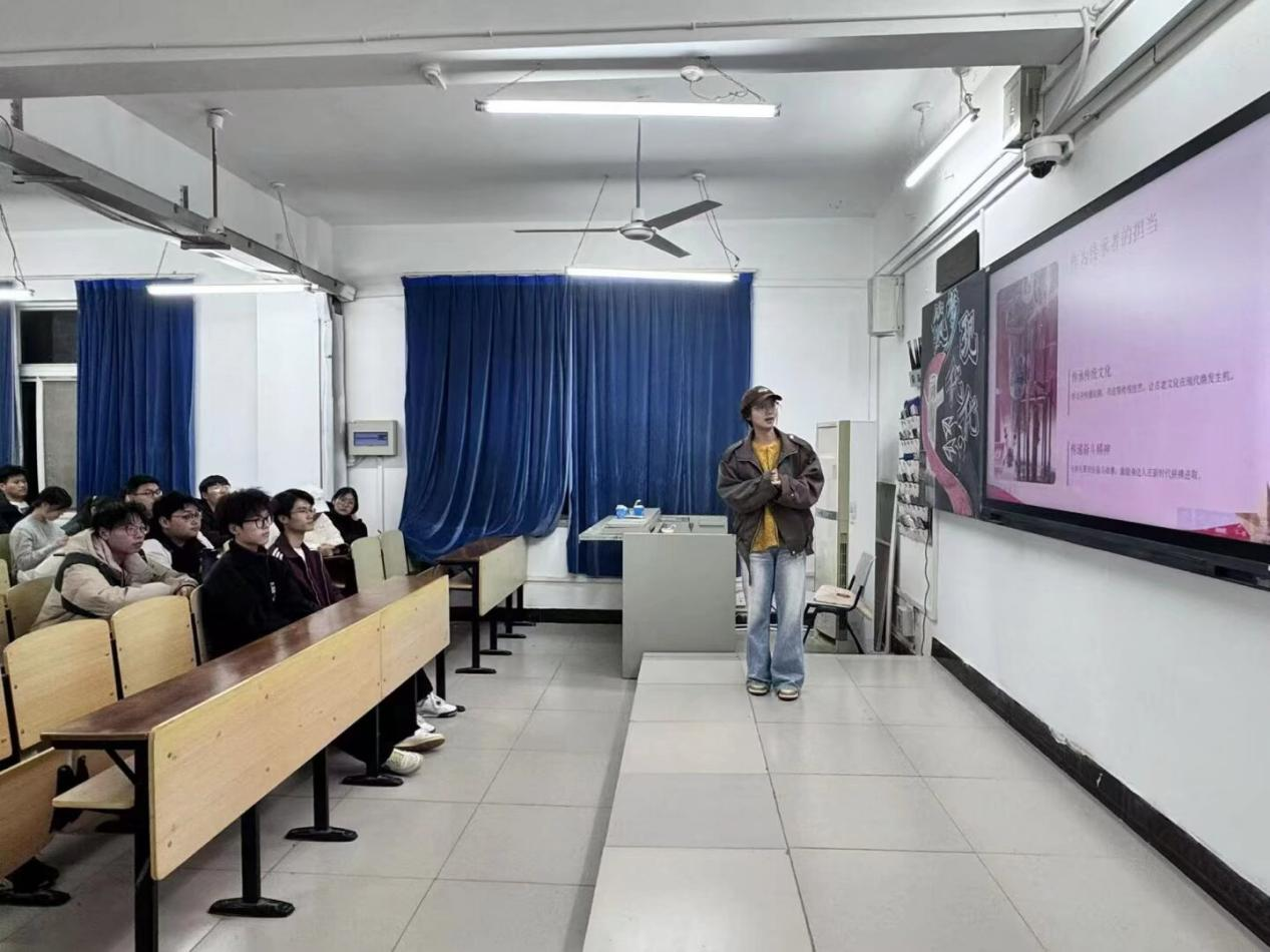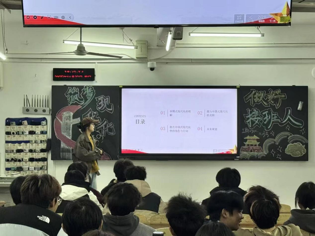 班会聚焦 “个人与中国式现代化的关联”“个人在中国式现代化中的角色与行动” 两大核心方向,展开深入探讨。李昱涵结合自身成长环境,分享了个人与中国式现代化的契合点 她还介绍了青年作为参与者、推动者、创新者和传承者可践行的具体行动,包括投身科技创新、助力文化传承、参与环保实践等,为同学们融入中国式现代化建设提供了清晰指引。