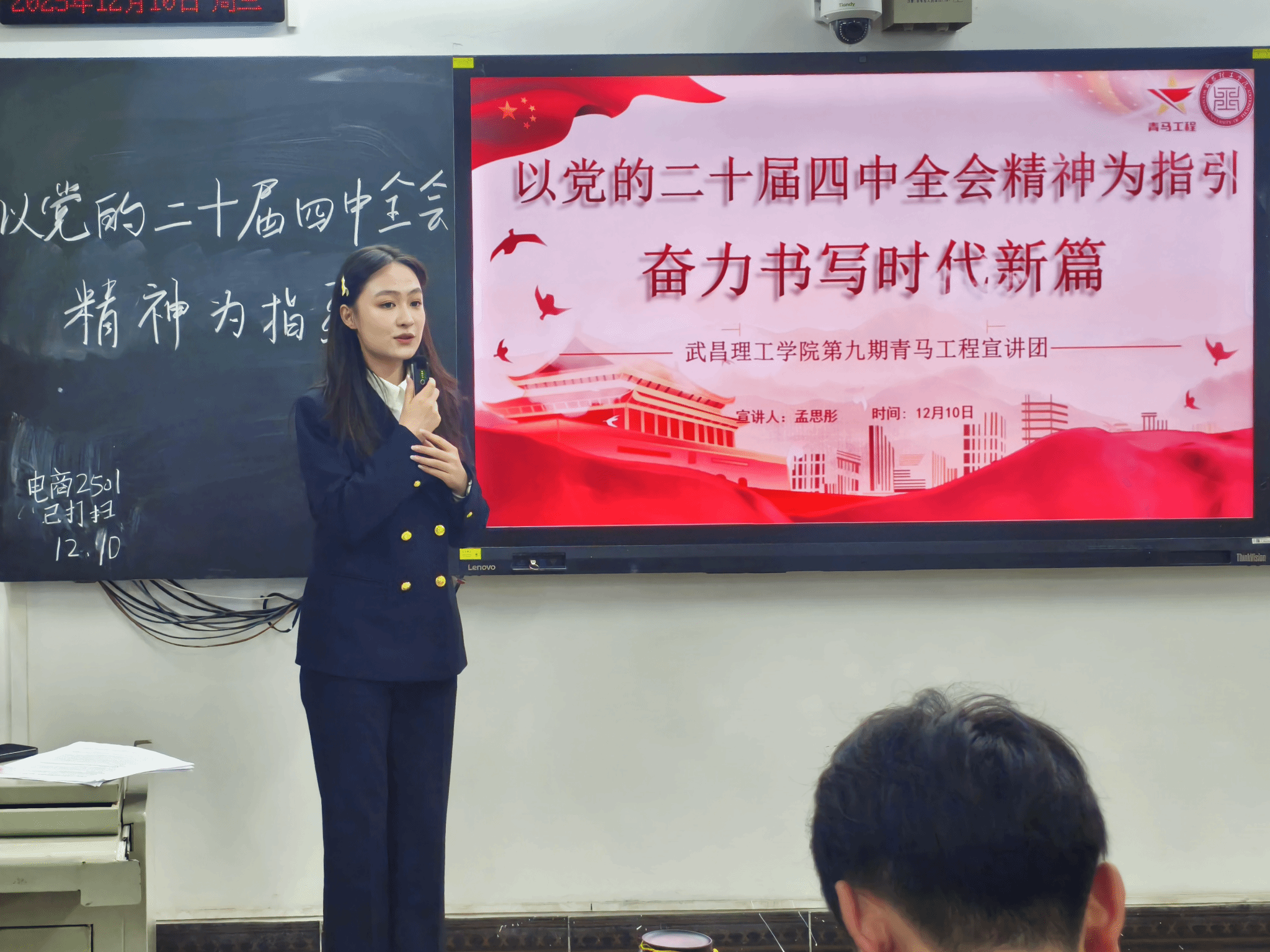 宣讲会上,青马学员结合自身实践经历展开分享:从 “百生讲坛” 的理论宣讲传播思想火种,到 “欢送毕业生晚会” 的服务奉献诠释责任担当,从暑期 “三下乡” 赴咸宁大坪乡达韦村小学支教的暖心实践,到参与 “百名师生讲党史” 线上线下宣讲的创新探索。一个个鲜活的实践故事,生动勾勒出青马学子在理论学习与实践锻炼交融并进中的成长轨迹。
