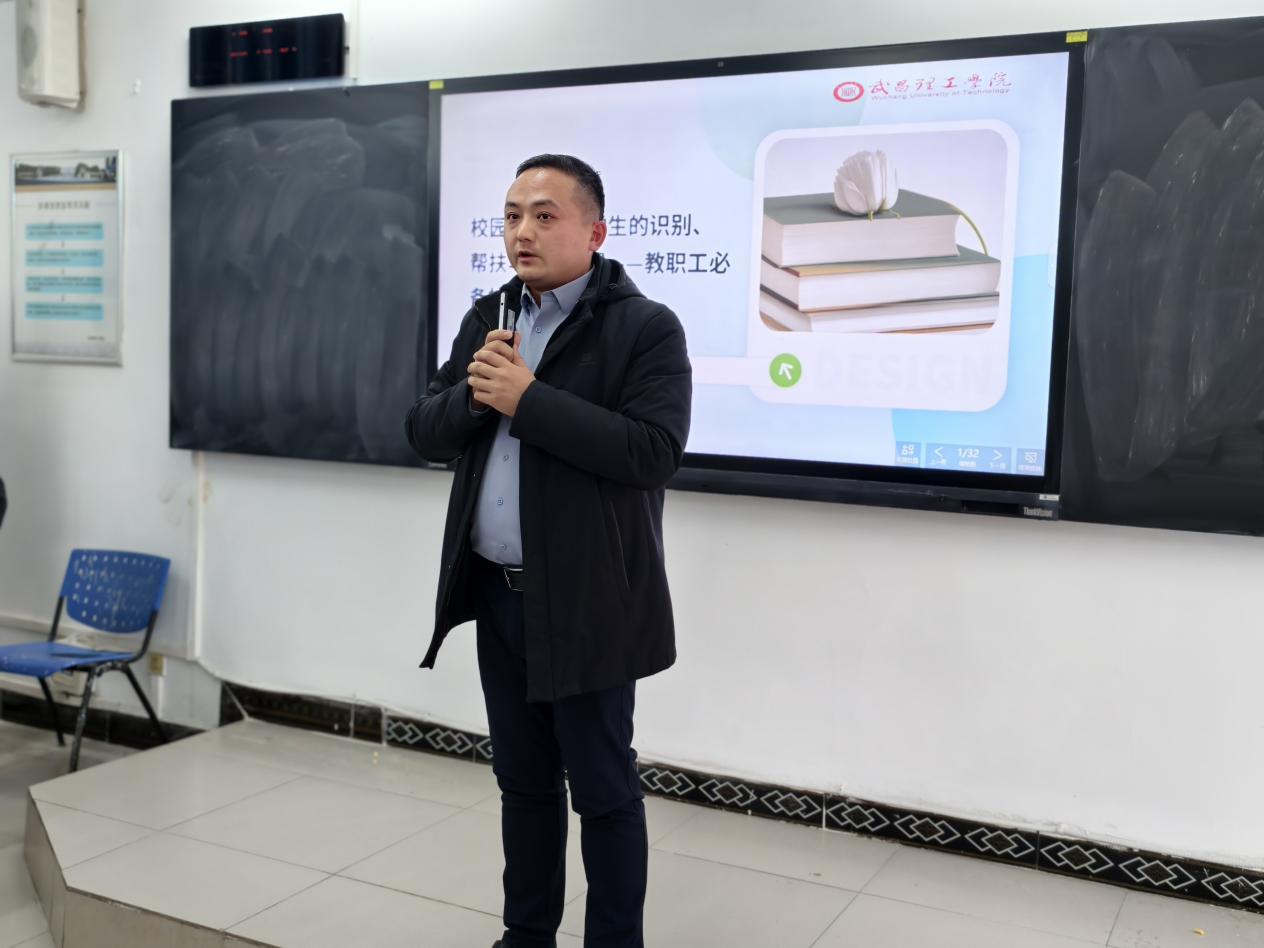(通讯员 徐海涛 报道)为深化“全员育人、全程育人、全方位育人”工作格局,切实提升教职工对学生心理危机的早期识别与科学应对能力,12月29日下午,永利集团304在605教室举办“洞察心灵信号,筑牢育人防线”心理危机识别能力专项培训。学院全体教职工共同参加本次培训,学生工作处心理健康教育中心专家孙华远老师担任主讲。
