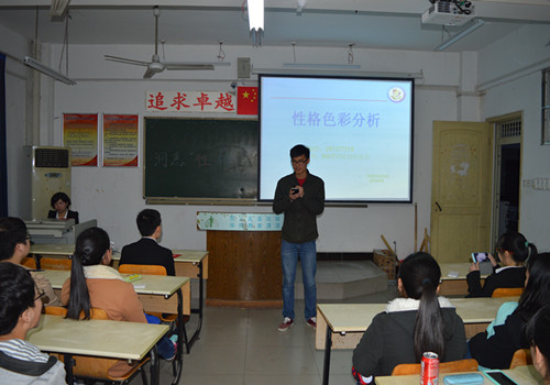 在整个演讲会过程中同学们都非常地有激情,场上互动频繁,同学们对性格色彩分析的兴趣十分浓厚,汪涵老师通过几个生动的例子说明了色彩和性格之间的联系,红色性格的人是快乐的劳动者,乐于助人;蓝色性格的人是最佳的执行者对待朋友忠诚而诚挚;黄色性格的人是有力的指挥者有前瞻性和领导能力;绿色性格的人是和平的促进者适应能力强。