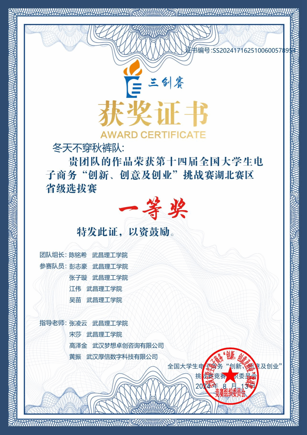 “冬天不穿秋裤”团队荣获全国大学生电子商务三创赛省级一等奖
