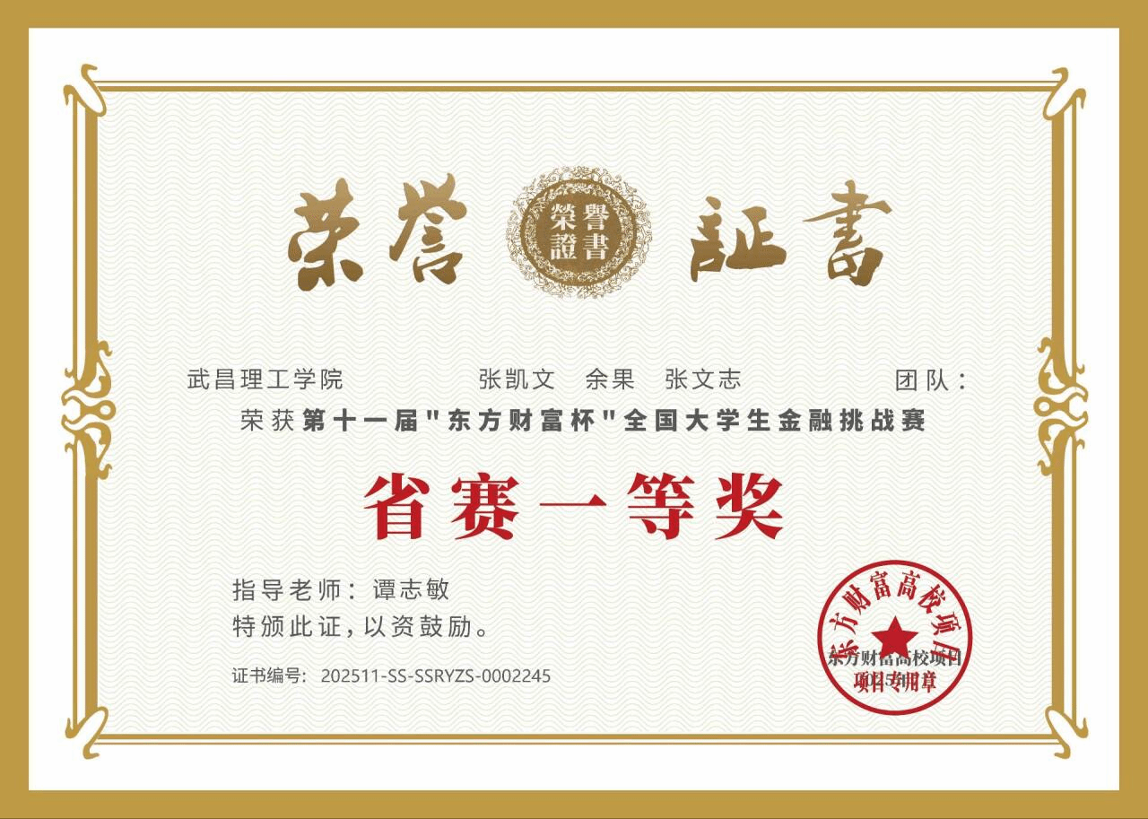 张凯文团队荣获“东方财富杯”全国大学生金融挑战赛省级一等奖