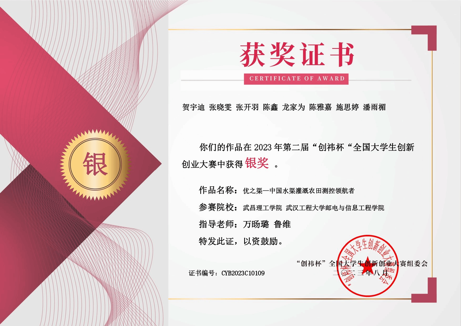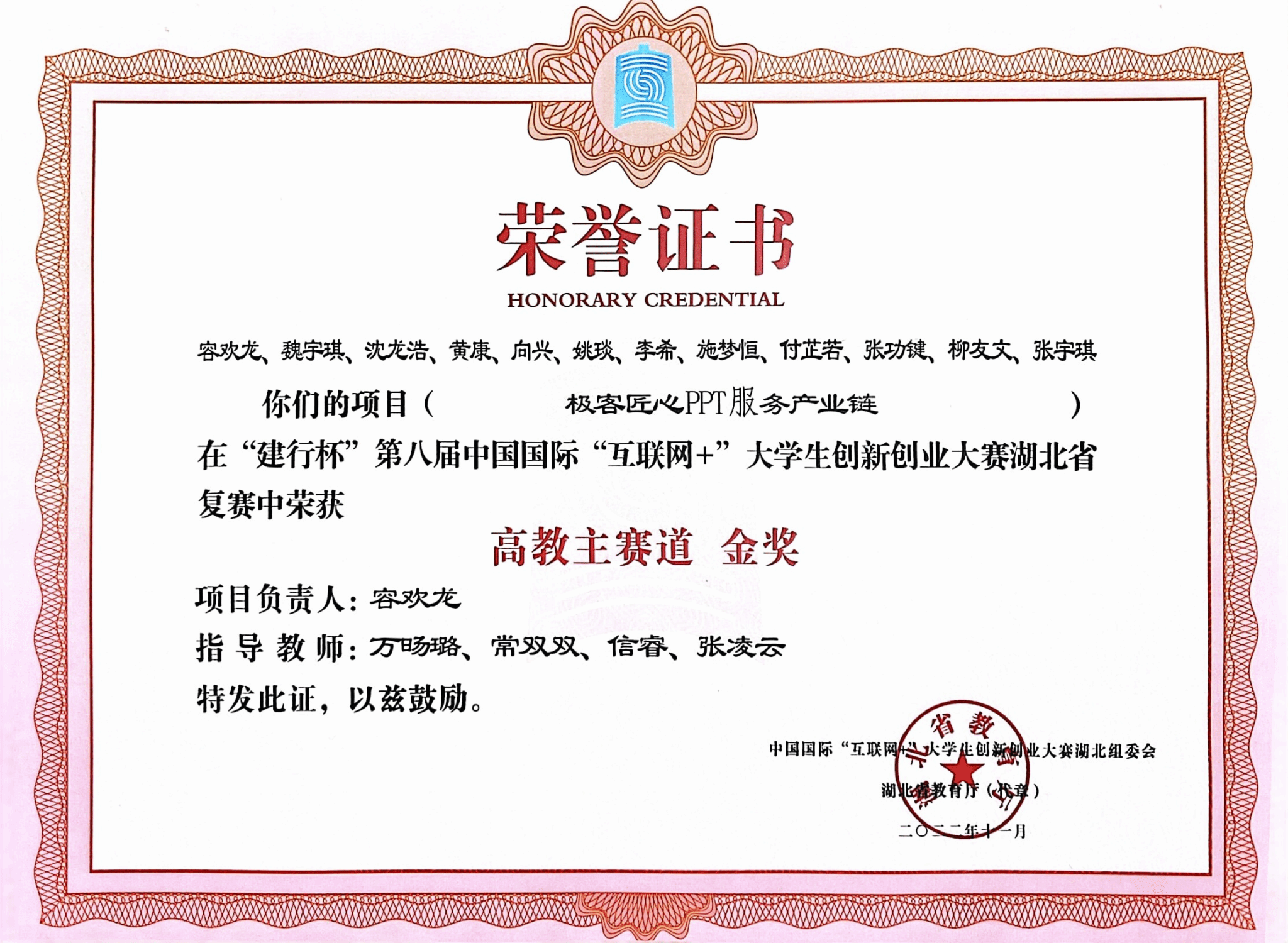 贺宇迪团队荣获“创祎杯”全国大学生创新创业大赛国家级银奖