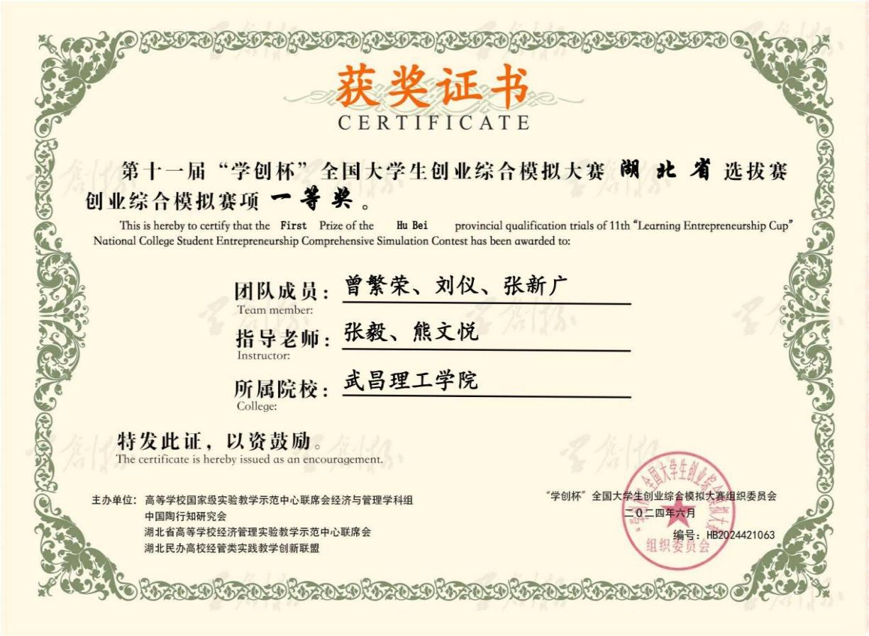 曾繁荣团队荣获“学创杯”全国大学生创业综合模拟大赛中获全国一等奖
