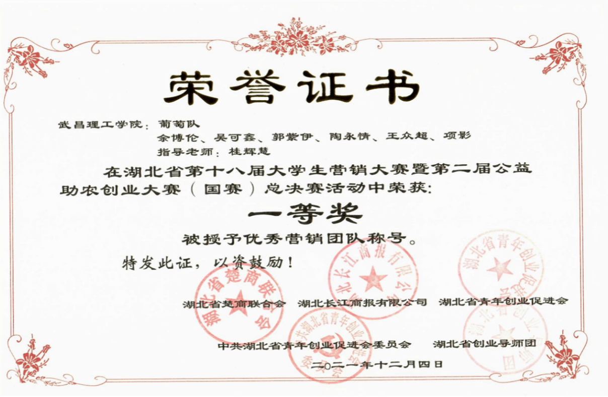 葡萄团队荣获大学生营销大赛暨第二届公益助农创业大赛中获全国一等奖