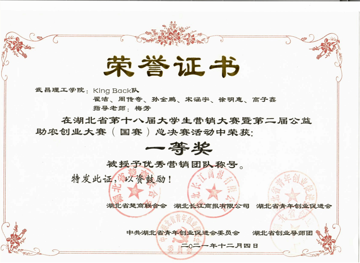 King Back团队荣获大学生营销大赛暨第二届公益助农创业大赛中获全国一等奖