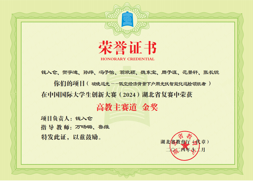“破晓巡光”荣获中国国际大学生创新创业大赛省级金奖
