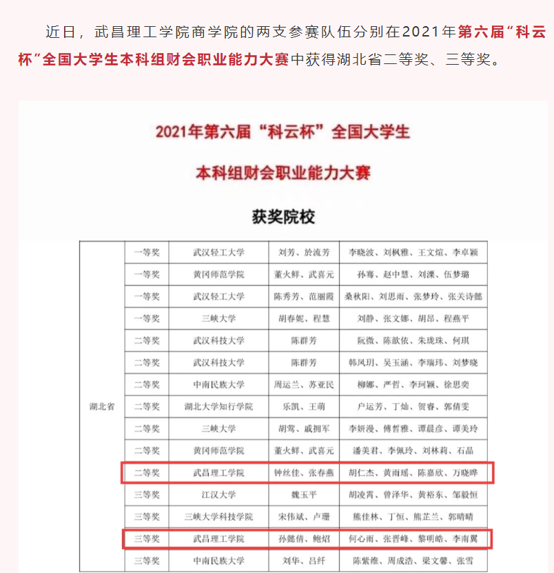 本课程校内教学团队由5人组成,教授1人,副教授2人,讲师2人。课程负责人卢占凤教授多年来承担中高级会计学、财务管理、成本会计等课程教学,主持完成3项省部级项目,报告《进一步完善湖北中小企业融资对策研究》曾获湖北发展研究二等奖。团队中有4人同时具有企业和高校工作经历,近三年来公开发表论文10余篇;团队成员还获得了304am永利集团教师教学创新大赛二、三等奖;指导学生参加国家级和省级学科竞赛获得多项二、三等奖。
