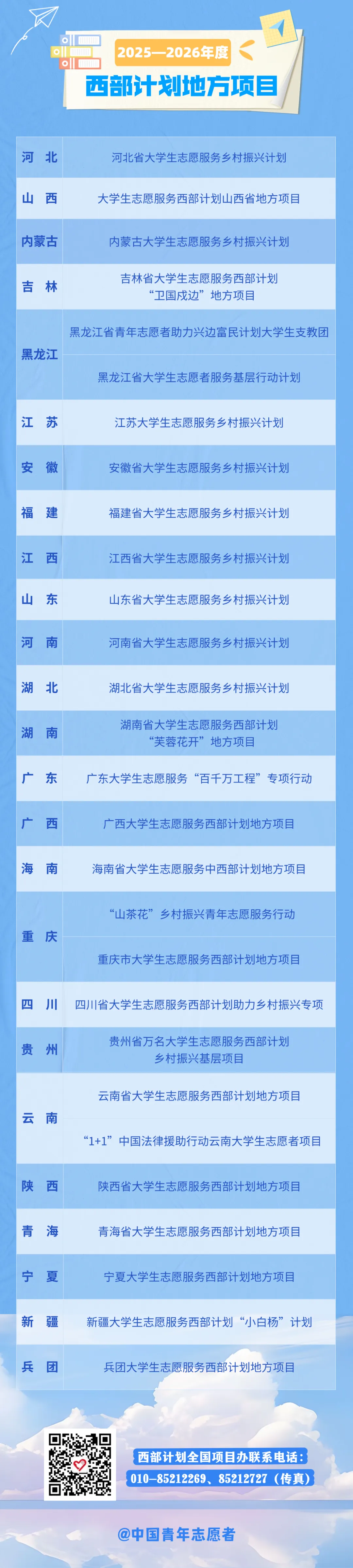 3月1日至5月10日,2025年普通高等学校应届毕业生或在读研究生,可通过微信公众号“西部志愿汇”(菜单栏中的“我要报名”)或登录西部计划官方网站(http://xibu.youth.cn),在西部计划报名系统中注册报名。