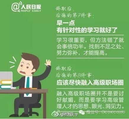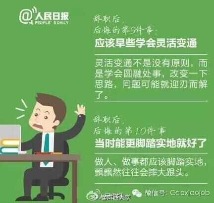 有的人通过辞职实现了自己的理想,然而很多人辞职后却感到后悔:①一开始就该全力以赴;②该早些明白骄傲自满是大忌;③该早些学会灵活变通;④太过拼命并不是工作的最佳状态…其实后悔的关键就是盲目辞职,并没有真正明白自己在工作中的一些不足之处.