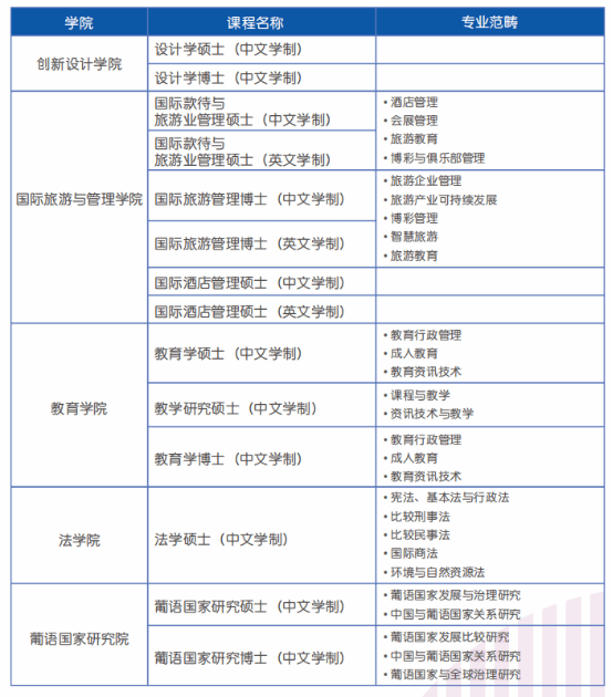 具体保荐工作开始时间请关注我校国际合作与交流处每学年秋季学期通知。保荐澳门城市大学硕士研究生项目具体内容如下: