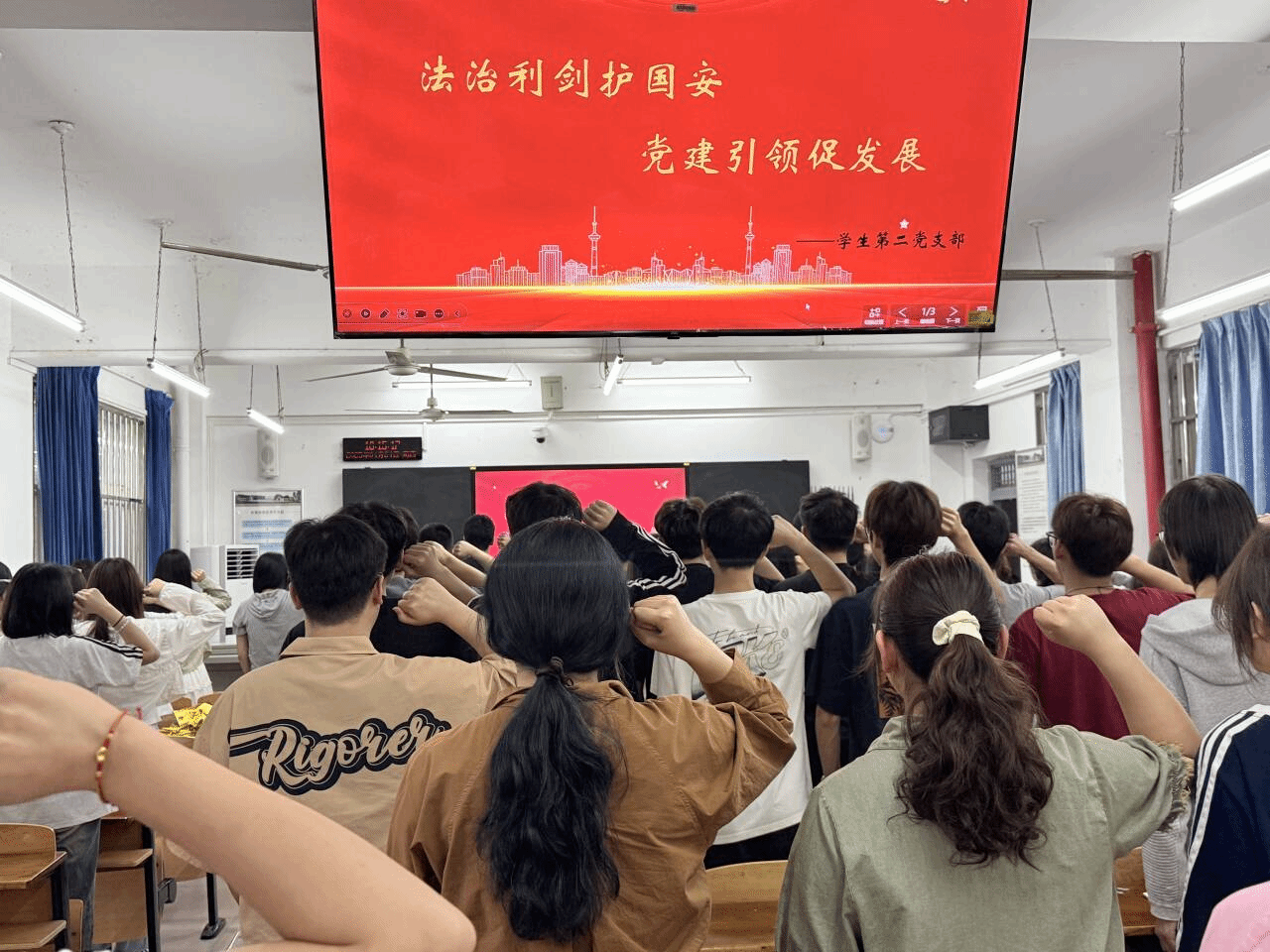 紧接着,支部通过观看法治建设与党建成果的专题视频,成员们直观感受到法治在保障国家安全中的重要作用,以及党建在引领社会发展中的核心力量。在交流分享环节,同志们结合自身学业与生活实际,纷纷表示将严守法律红线,学法、尊法、守法、用法,在日常生活、网络言行等方面,主动担当起国家安全“守护者”的角色。