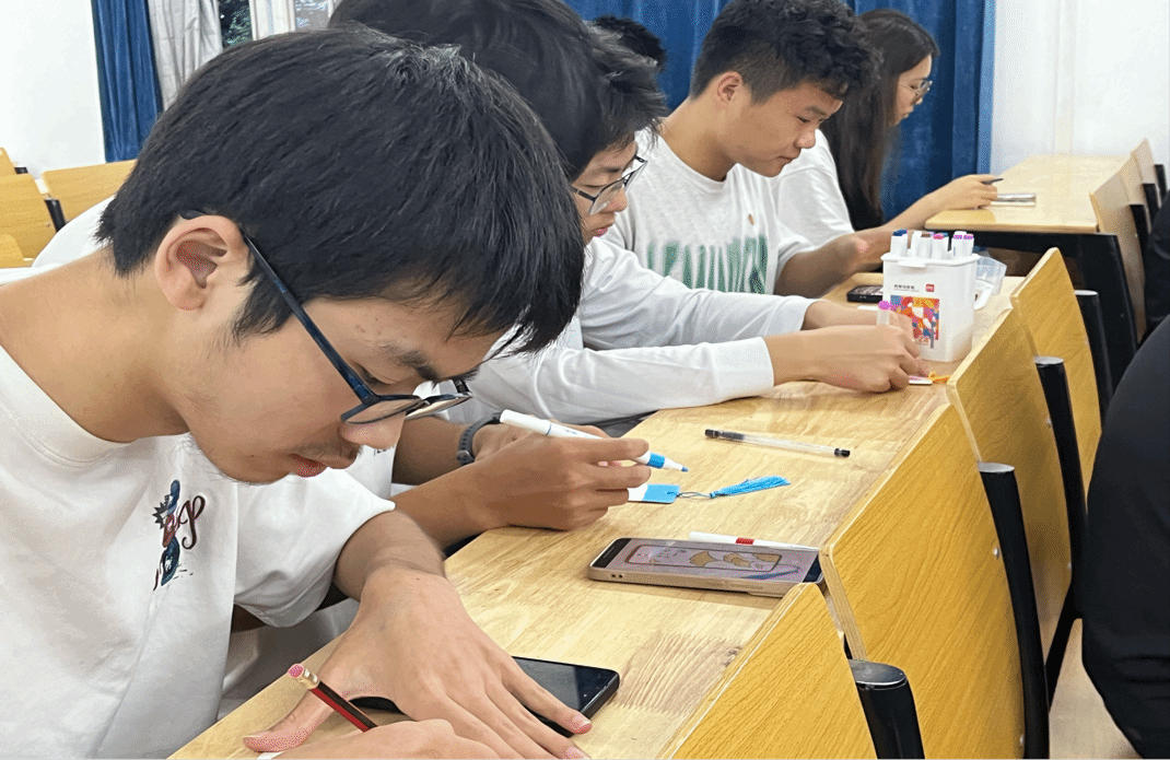 进入 “绘制书签” 实践环节,永利集团304学生第一党支部的同志们领取书签,并根据提供的教程和水彩笔完成书签的手工制作。张思晨同志鼓励结合秋分丰收元素(如稻穗、果实)与秋收起义红色元素(如红旗、井冈山轮廓)自由创作,既可绘图案,也可书写 “坚定信念” 等革命精神标语。完成后,分享交流环节随之展开。同志们纷纷展示自己绘制的 “秋分时节井冈山” 书签,并分享对 “秋分丰收” 与 “革命成果” 内在联系的思考。