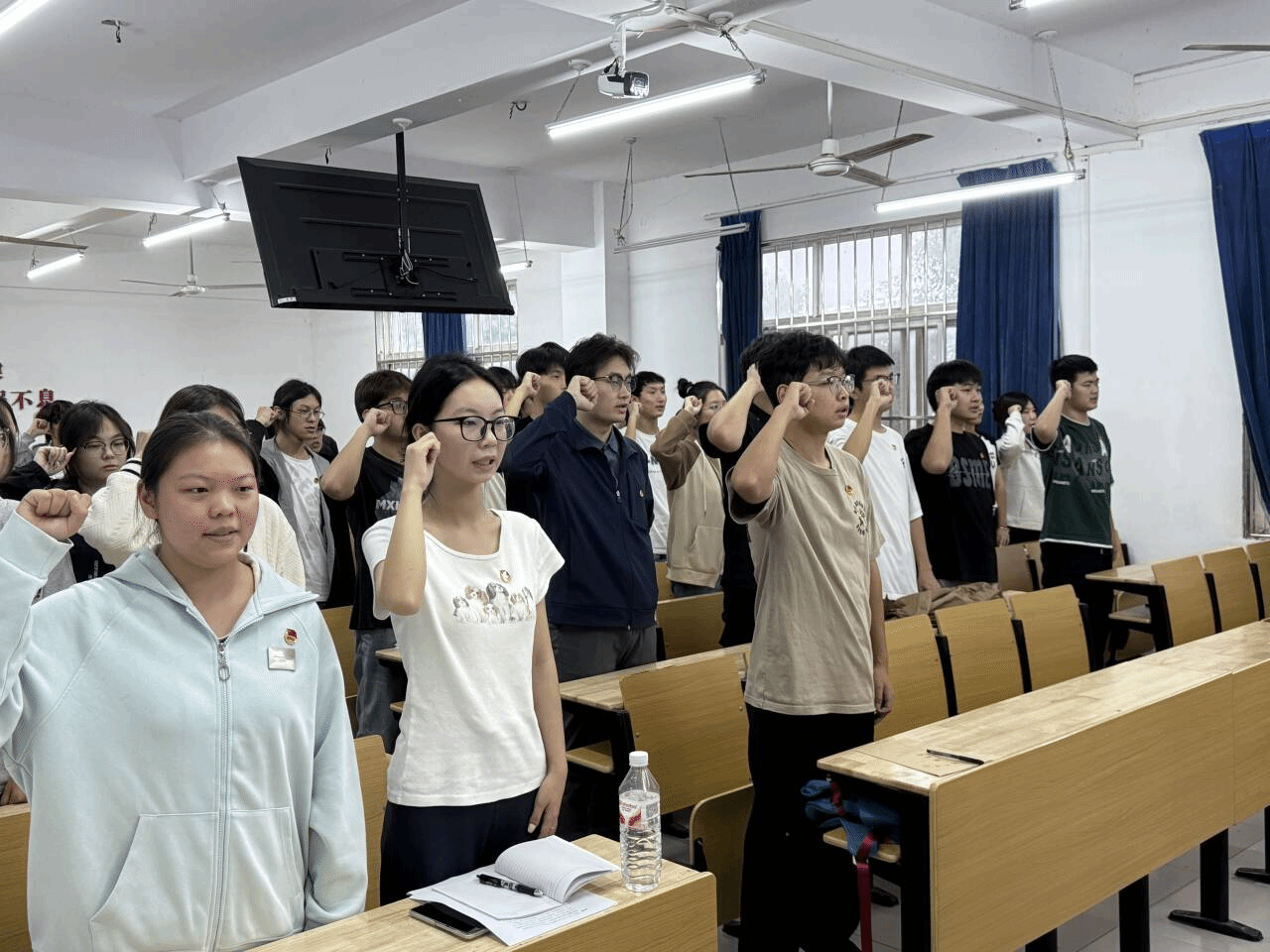 本次活动由支部组织委员余瑶晴同志策划并开展。活动从庄严的国歌声中拉开帷幕,随后,由余瑶晴同志带领大家举起右拳,重温入党誓词,在学习环节,通过观看阅兵典礼发言相关专题视频,支部成员直观体会到国家实力的磅礴展现、民族精神的深厚凝聚,既唤醒了深刻的历史记忆,更坚定了和平发展的鲜明决心。