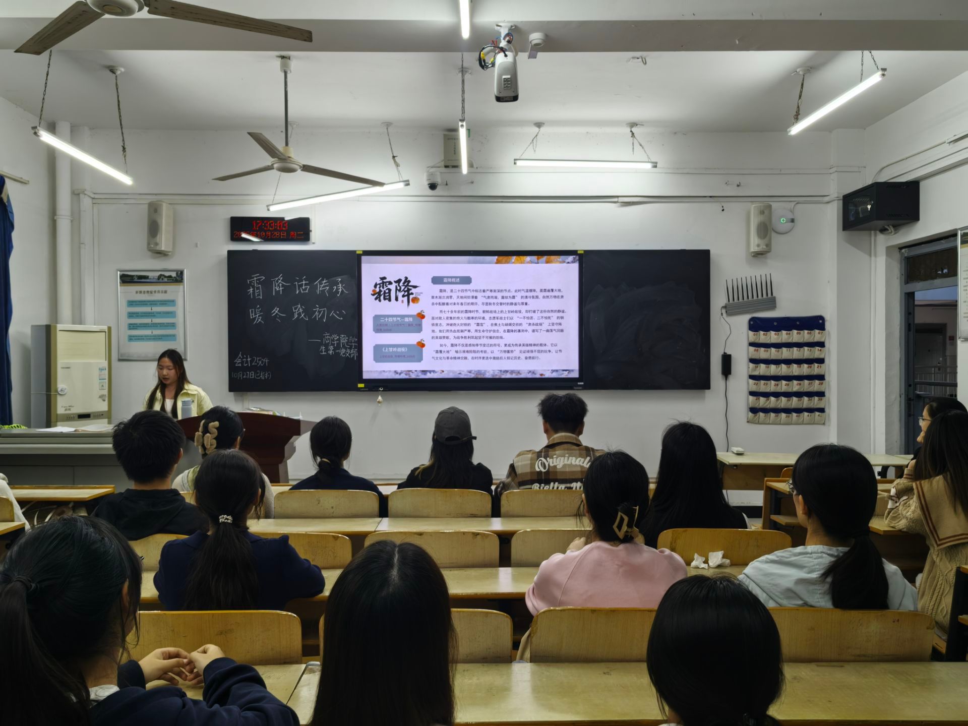 活动由张思晨同志主持。她首先详细介绍霜降作为二十四节气之一的由来及其物候特征,阐释“初乃祭兽、草木黄落、蛰虫咸俯”的自然现象,解读霜降“收尾蓄能”的深层寓意。随后组织播放《霜降》民俗短片与《上甘岭战役》历史纪录片,通过影像资料展现节气智慧与革命精神的深刻联系,引导同志们理解霜降凝霜蓄势与上甘岭战役坚守不退的内在共鸣。