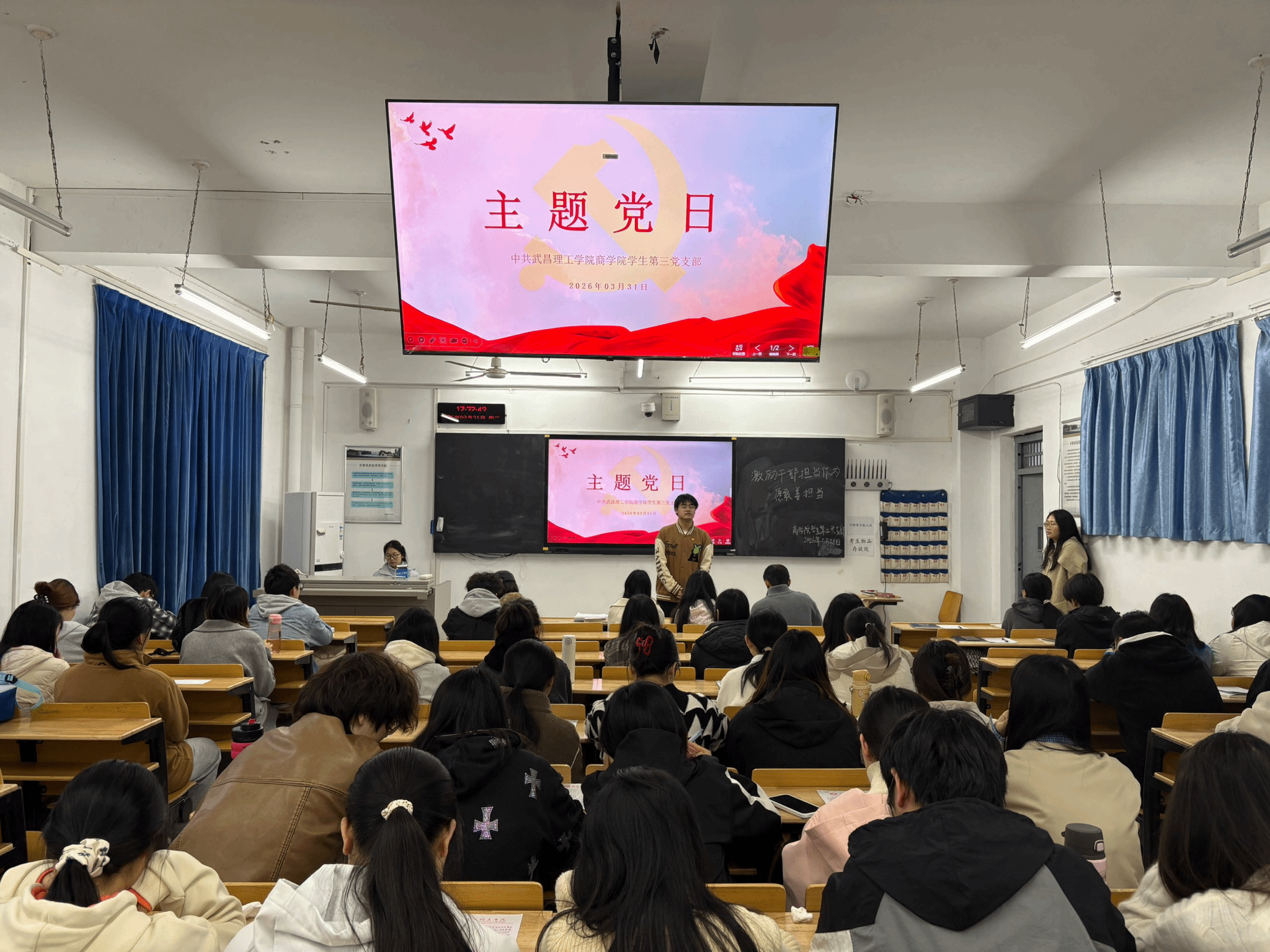 为持续强化干部责任意识、实干精神,深入推进作风建设,引导全体同志立足岗位敢担当、善作为,切实筑牢履职尽责思想根基,2026年3月31日18时,永利集团304学生第三党支部在永利集团304303教室开展“激励干部勇担当、 实干笃行善作为”主题党日活动。