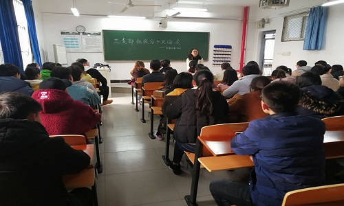 会议伊始,由詹燕同志作为主持人强调会前纪律,宣布会议开始。梅芳书记发表讲话,她讲到以下三个内容:第一,欢迎这学期新加入支部的新鲜“血液”,希望他们在支部能够有收获;第二,希望支部所有的同志能够端正自己的思想,也能够大胆“秀”自己,把自己优秀的一面展现出来,也可以在一定程度是提高自己,让自己进步;第三,大家既然选择的入党这条路,也有一定的付出来到了学工第三党支部的大家庭中,希望大家既来之,则安之。有吃苦耐劳的精神、有信心、能坚持。