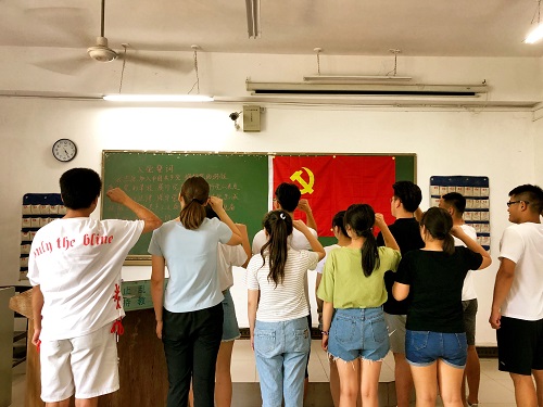 各发展对象都成功被发展,书记与副书记为发展的预备党员佩戴党员徽章,在党旗下进行庄严地宣誓,“拥护党的纲领,遵守党的章程,履行党员义务”是每一个人的宣誓词也是每一名党员应尽的义务。