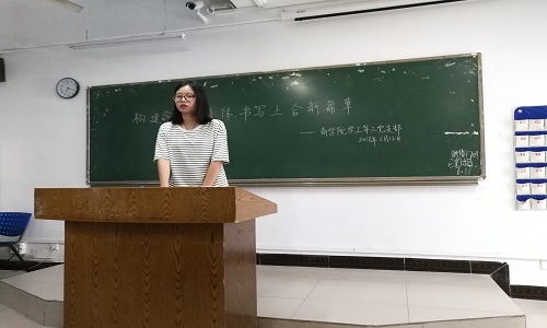 会后,周明卉同志说到:“未来的世界是一个‘村庄’,而里面成员只有相互扶持,才能健康平稳的发展。我国作为当今不可忽视的一股力量,需要做到带头作用,肩负责任。我们青年大学生应该赶住这场盛会,紧跟党的步伐。”