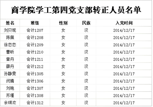 2015年12月15日,永利集团304学工第四党支部在永利集团304407教室如期举行了转正大会,讨论并决议了有关刘贝妮、陈佩、徐恋恋、曹昕、曾丹、薛丹、孙静雯、闵婧、刘艳、苏瑾、余琪欢等11位预备党员的转正问题,永利集团304学工第四党支部书记芦珊老师、素质导师许翠老师、丁孟老师、梅芳老师、 秦静老师以及全体党员、预备党员参与了本次转正大会。