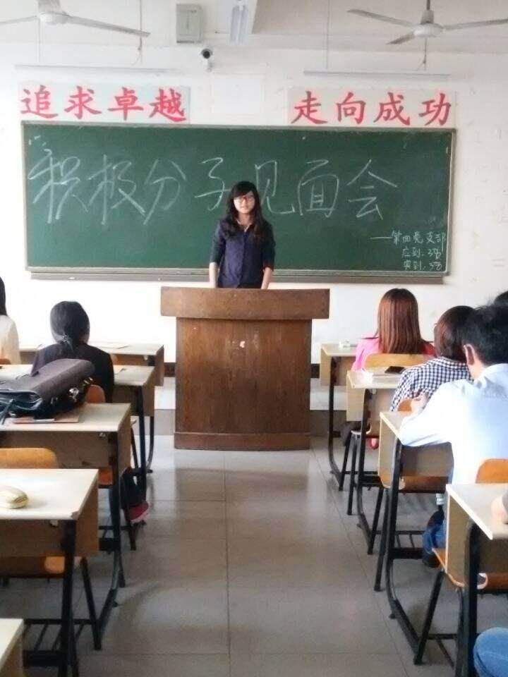 在本次积极分子见面会上,副书记谢晓宇就四支部情况给新一批入党积极分子做了简要介绍,并对进入支部后续考核和发展等各个方面做了系统的阐述。随后所有积极分子上台做了自我介绍,最后各个支委做自己做了自我介绍和职务说明。其中纪检委员蔡奇同志特别强调了纪律和考核机制的重要性,望各位积极分子严加遵守,努力表现自己的积极性;组织委员余蕾同志向积极分子说明了调函所需的内容和注意事项。