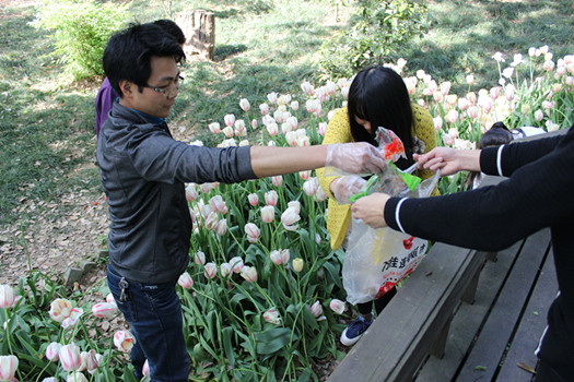 植物园繁花似锦、春意盎然,大批游客在园内观赏留影,随之而来的则是草坪上的大片白色垃圾以及池塘里的丢弃物,格外扎眼,与美丽风景形成鲜明对比。随后成员们都纷纷戴上手套、拿上清洁工具对大面积的草地、池塘进行了细致的清理,被悬挂在树枝上的风筝以及水池中央的垃圾给大家的清理工作带来极大的难度。最后在大家齐心协力、通力合作中圆满完成此次义务清洁工作。活动结束后,有成员表示:经过此次的清洁体会到了工作难度,并表示自己在以后的生活中,不会像这样随地制造垃圾。