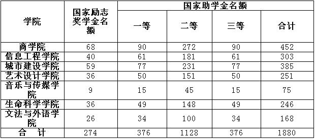 学校根据省财政厅、省教育厅有关通知要求,按照贫困生人数将省财政厅、省教育厅下达我校的国家励志奖学金、国家助学金名额进行了分配,名额分配如下: