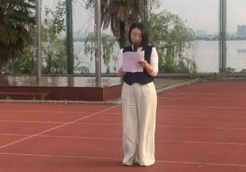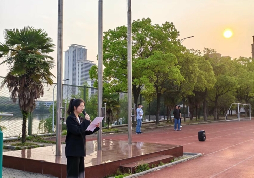 随着一切准备工作就绪,国旗在国旗护卫队的护送下庄重入场,而后国歌响起,缓缓升起的五星红旗在场上所有同学和老师的注视中迎风飘荡。升旗结束后,由来自电子商务2302班的学生代表吴思彤进行演讲,她概述了中华人民共和国的复兴复强之路,引用列宁同志的名言“没有革命的理论,就没有革命的行动”,生动展现了当代中国在习近平新时代中国特色社会主义思想引领下高速发展,并以此呼吁广大青年应当担起责任,满怀热情的为中华民族伟大复兴奉献出自己的力量。