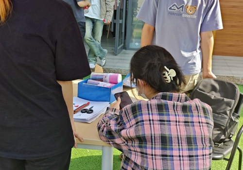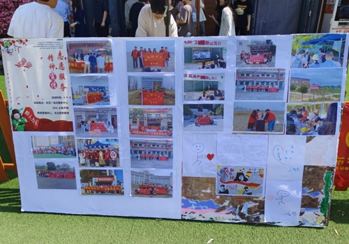 活动开始前,青工部的学生骨干们对布置好的场景进行了全面检查。而后,他们将志愿者协会一路走来所经历的志愿活动、社区活动和社会实践的成果照片张贴在宣传板上,如之前的旧物闪耀计划——通过旧衣物和旧书籍的回收,为偏远地区的孩子们献上一份温暖、在天兴洲郊野公园开展公益捡垃圾活动等等。这些活动都展示出了他们努力的痕迹。针对如今严重的独居老人和留守儿童现象,他们安排志愿者准备好卡纸手工工具和贴纸,引导参与人员留下给志愿者、社区独居老人与留守儿童一份祝福、一份温暖,并给予参与者随机礼品。