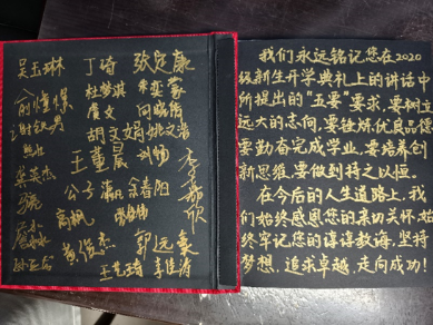“我们始终感恩您的亲切关怀,始终牢记您的谆谆教诲……”这本相册扉页上密密麻麻记录了大学四年的感动瞬间。