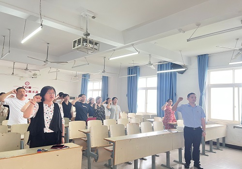 随后,罗俊书记和其他教师们重温入党誓词。“我志愿加入中国共产党,拥护党的纲领,遵守党的章程……”教师们齐声诵读着入党誓词,声音铿锵有力,回荡在教室的每个角落。随着誓词的结束,教师们纷纷低头沉思。重温入党誓词不仅是对过去的回顾和缅怀,更是对未来的展望和承诺。教师们将以更加饱满的热情和更加坚定的信念,继续为党的事业奋斗终身。