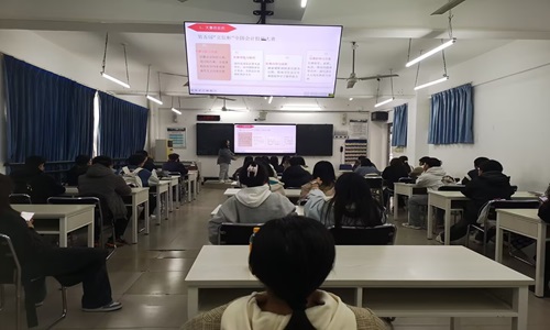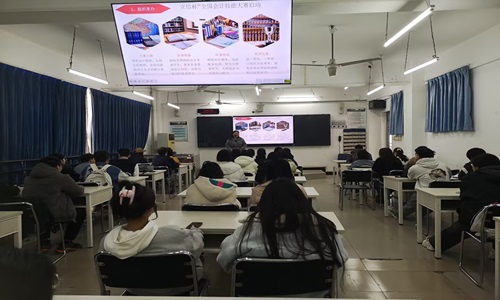 此次会计协会邀请了会计系的各位指导老师前来,由冉亚珍老师作为主讲人来向学生介绍大赛内容,会计协会成员参与。