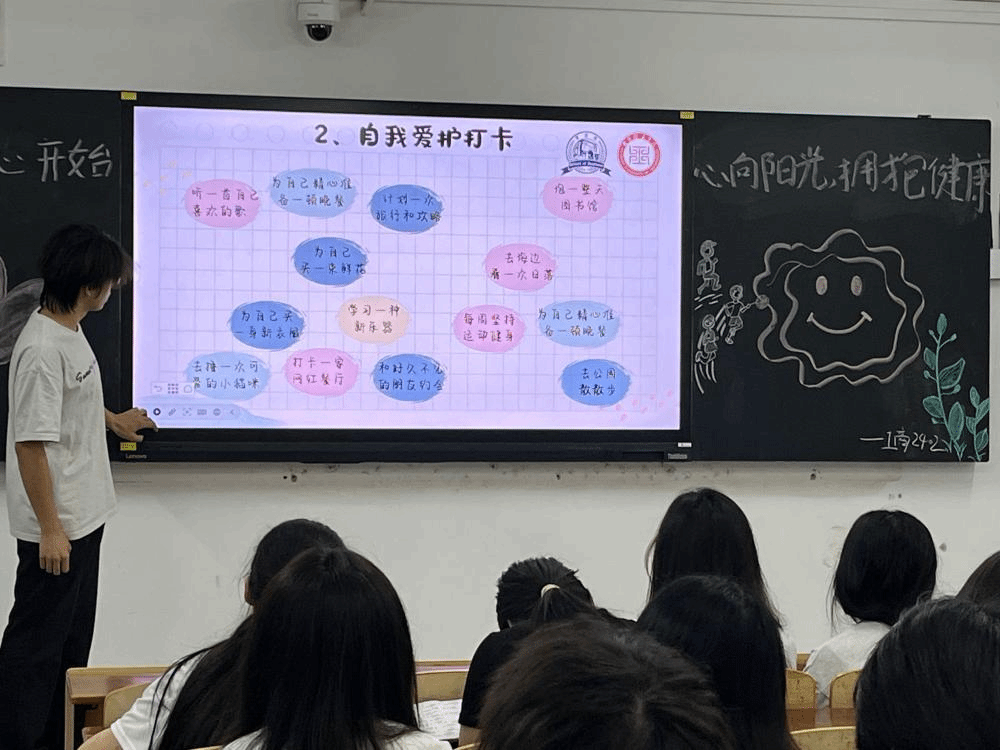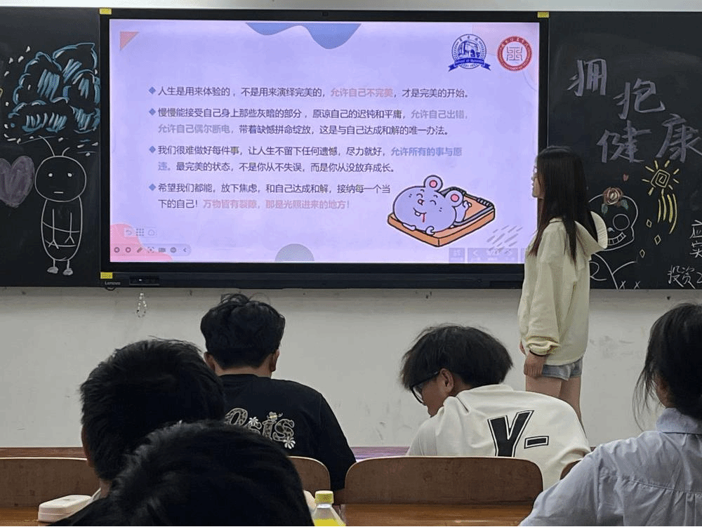活动中,各班心理委员深度融合心理部精心制作的PPT内容,以自身的成长故事与身边真实案例为引,生动讲解心理健康基础知识,剖析常见心理问题的表现与成因,并分享切实可行的应对策略及自我关怀技巧,让心理健康知识真正走入同学们的内心