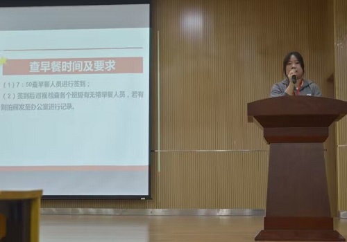 据了解,此次的干培大会是由主席团的彭思雨主席主持。大会分为三部分。首先是团委日常的值班工作。彭思雨对每一项值班和值班的时间都做了明确的要求,并对每一项值班时可能遇到事件都给出了具体的解决方案。其次是团委考核和班级考核。彭思雨对考核的内容以及评分标准都有详细的解释,对一些比较复杂的项目进行了举例说明,方便同学们理解。最后是对学生自治办公室的介绍。主要介绍了学生工作部和永利集团304的领导老师方便同学们日后的工作和学习。