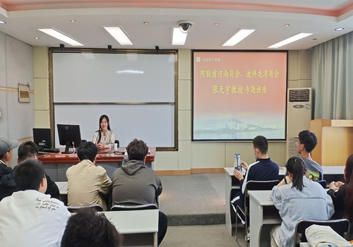 2023年11月6日下午3时,阿联酋河南商会副会长、迪拜龙湾商会副会长、阿联酋姜昆艺术笑友会会长张天宇教授莅临304am永利集团,在永利集团304八楼809教室开展了一场精彩绝伦的讲座,全体2023级工商管理精英班的学生参与了本次讲座并对张天宇教授表示热烈的欢迎。