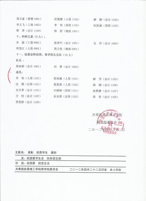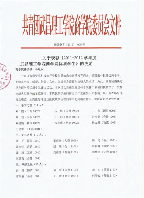 关于表彰《2011-2012学年度永利集团304优质学生》的决定