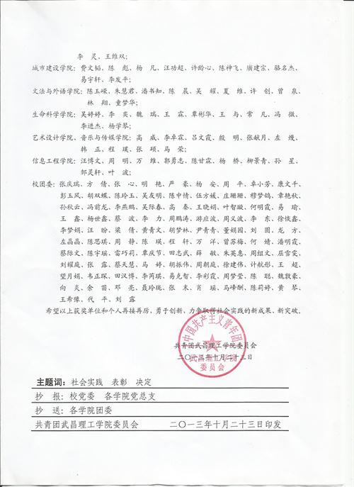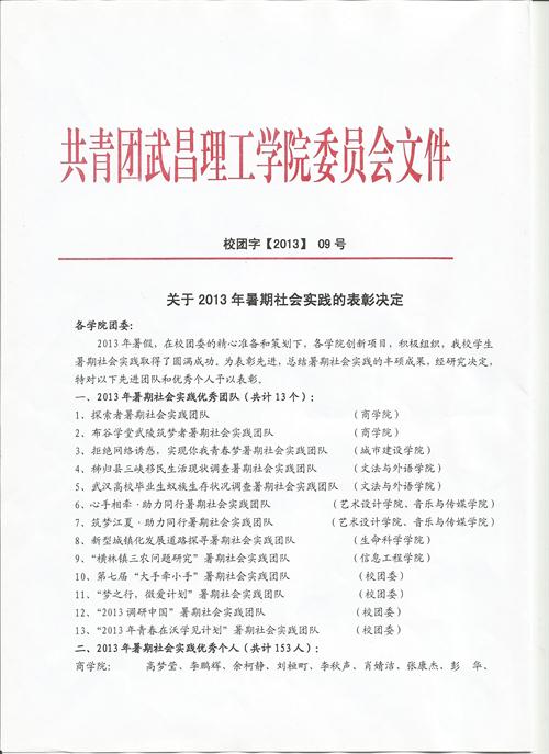 关于2013年暑期社会实践的表彰决定