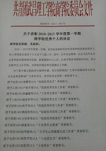 永利集团304关于2016-2017学年度第一学期优秀个人决定