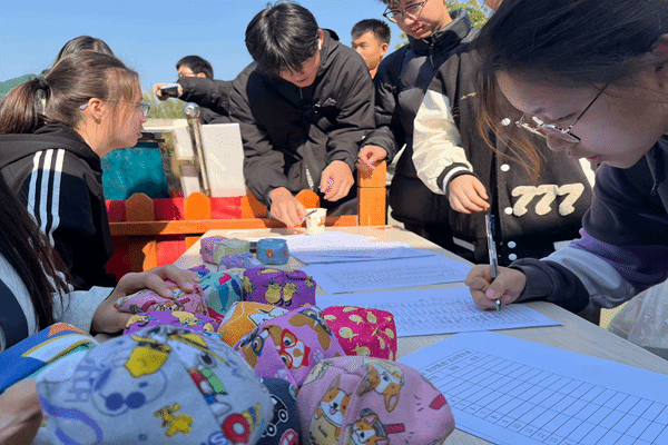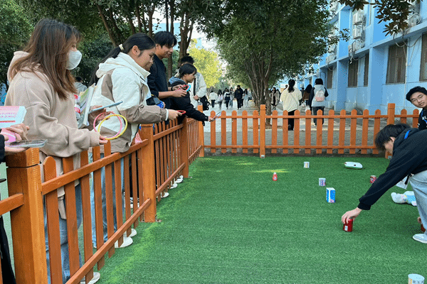 活动现场,负责人们精心设计的创作板吸引了众多学生的目光。值班人员耐心地向同学们介绍活动流程,并鼓励他们积极参与。活动包含三个环节首先是“留下你的笑脸”,参与者可以在笑脸板上自由创作,表达自己的情绪,完成后可以获得三个沙包。在扔沙包环节中,设有两个投掷点:一个是在一定距离外摆放空瓶,参与者站在投掷线外尝试击倒空瓶,根据击倒的数量获得套圈。另一个是在一定距离外摆放数字圈,沙包最终停留的区域数字总和决定了获得的套圈数量。最后,参与者可以使用手中的套圈参与“套圈游戏”。