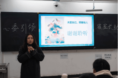 讲解结束后,段亚平向在场的各位寝室长补充介绍了国家心理健康和精神卫生防治中心等权威机构以及相关的微信公众号,并引导有相关心理问题的同学们可以主动到校心理健康教育中心进行咨询,专业心理医生会提供专业帮助。