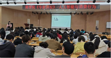 其次,在人工智能与消费行为的话题下,山东科技大学管理科学与工程专业博士高雪分享了人工智能在市场营销、客户服务等领域的应用,以及消费者数据隐私和信息安全等问题。高雪博士结合最新的科技趋势和案例,引发了学生们的思考和讨论,并且介绍人工智能技术在消费者行为识别、预测等方面的应用,人工智能(AI)对消费者行为的影响,及需求挖掘和营销战略创新,使学生了解专业发展前沿,树立从业信心,激励学生探索相关领域知识,完善知识结构。大学生们纷纷表示,通过这次讲坛,他们对人工智能的发展前景和潜在影响有了更深入的理解,将会积极学习相关知识,为未来的就业和创新做好准备。丁博一(大二学生):“这次讲坛让我感受到了学术与实践的结合之美。通过与专家的交流,我不仅了解到了最新的行业动态,还学到了许多实用的知识和技能。我会将这些知识应用到自己的学习和工作中,为未来的发展做好准备。”