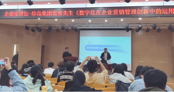 10月29日晚,珍岛集团中部大区总经理张彬主讲的“数字化在现代企业营销管理创新中的运用”讲座成功举行。张彬总经理在讲座中详细探讨了数字化转型的背景、中小企业数字化转型的思路和路径、企业营销数字化的具体场景和应用,以及珍岛集团在数字化营销领域的相关情况。在互动环节,同学们积极参与讨论,提出了许多有深度的问题,如数字化转型过程中如何平衡创新与风险、如何提升员工对数字化工具的接受度等,张彬总经理一一进行了详细解答。电子商务2302班的梁喻轩同学表示:“数字化助力营销创新精准,为企业在市场竞争中提供了新的优势。” 电子商务2201班的李欣悦同学认为:“企业通过数字化可以整合用户数据,构建详细的用户画像,从而实现精准营销和个性化推广,这是数字化在营销管理创新中的重要体现。”