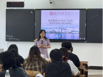 会上,张燕燕主任首先详细解读毕业实习方案。她明确,旅游管理2202班全体同学将于9月2日统一乘车前往京山大洪山旅游开发有限公司研学教育基地,开展为期三个月的实习活动。本次实习岗位聚焦研学导师与研学教官两大核心方向:研学导师需负责研学课程备课、现场讲解及亲子类研学活动组织。研学教官则需统筹研学团队的日常纪律、户外拓展安全及应急处置工作。张主任强调“这是将课堂理论转化为职业能力的关键一步,大家要以职业人的标准严格要求自己。”