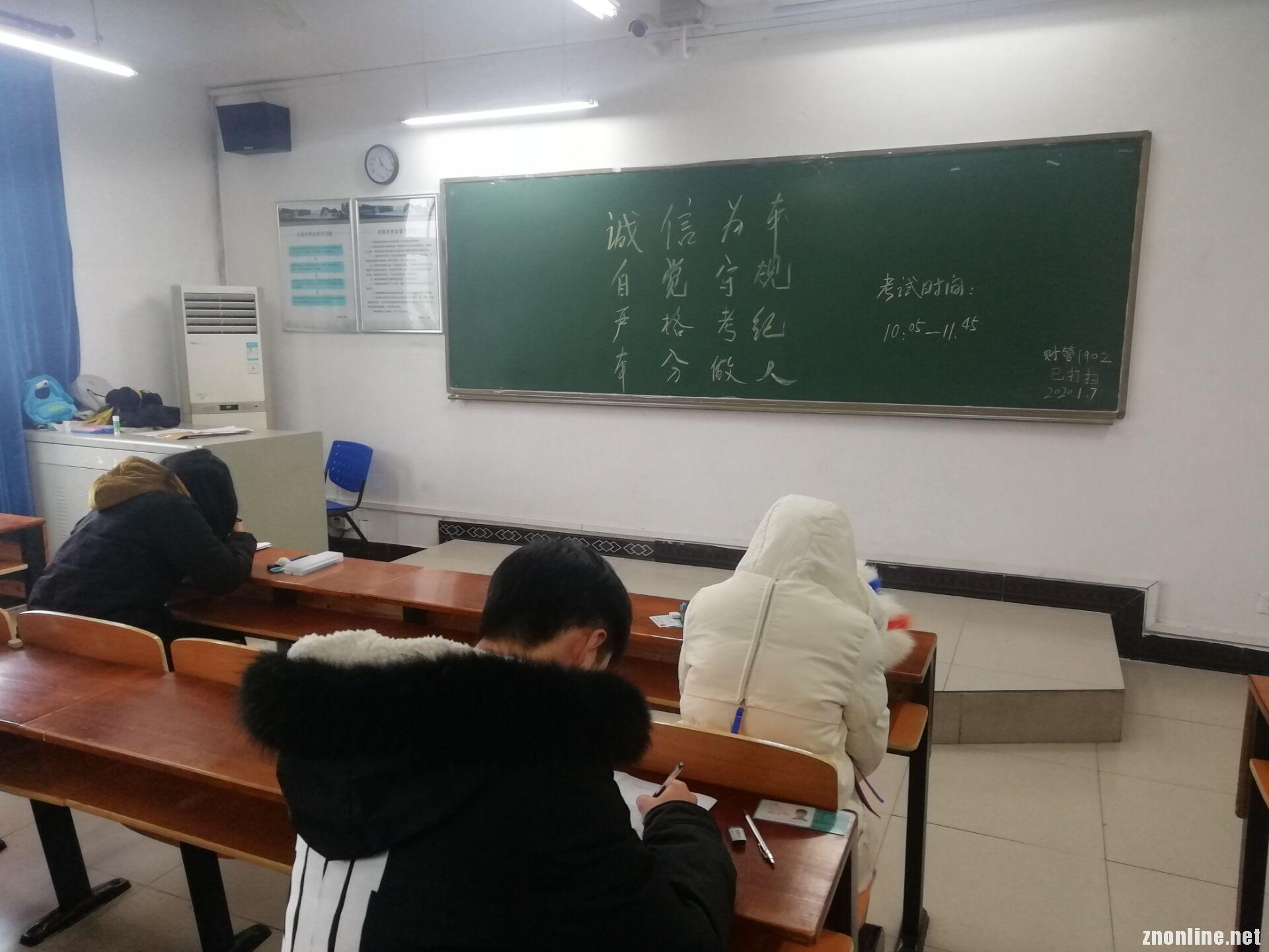 中南在线1月10日消息(记者 鲁信 报道)考前需签订一份“诚信考试承诺书”,凡诚信考场考试的班级学生未出现一例违纪时,本班级在学院评优、评先时实行加分。1月9日上午,永利集团304正在举行一场期末考试,这些考场内没有监考老师,黑板上写着“诚信为本 自觉守规 严格考纪 本分做人”的誓言,代替了平时考场内的“端正考风 严肃考纪”。