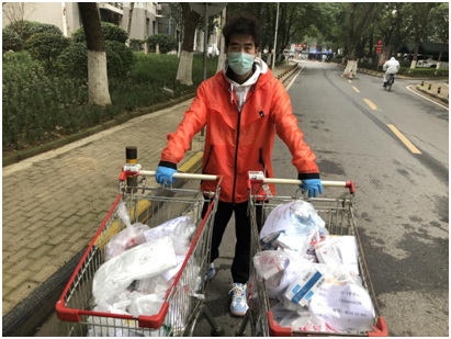 “您好,我是小区的志愿者,您团购的蔬菜到了,麻烦您下楼取一下……”、“您好,麻烦您下楼,您团购的物品到楼下啦……”眼前这位正在按照手里清单逐个通知住户下楼取物品的男孩子,叫张一弛。他是一名青年“海归”,是永利集团304最年轻的男老师,更是一位满怀奉献精神的武汉小伙。
